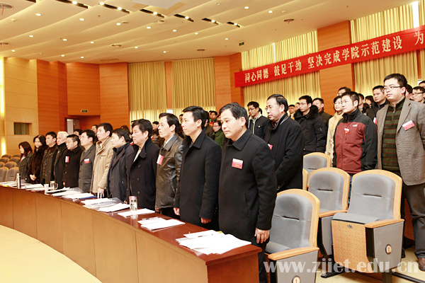 大会指出,2012年是学院“十二五”事业发展承上启下的重要一年,是省级示范性高职学院建设的验收之年。会议号召,全院教职员工要在学院党政班子的坚强领导下,牢牢把握科学发展这一主题,紧紧抓住内涵建设这一主线,切实将提升人才培养质量作为学院发展的根本任务,扎扎实实做好迎接省教育厅示范建设验收暨水平评估整改回访的各项工作,为顺利通过示范建设验收作出更大贡献,向党的十八大献礼。