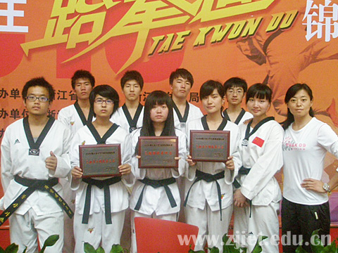 我院跆拳道院队参加了大学生乙组的比赛,在杨建英老师的带领下,大家顽强拼搏,经过三天紧张激烈的角逐,凭借实力与智慧最终夺得女子团体并列第二、男子团体第三的优异成绩。