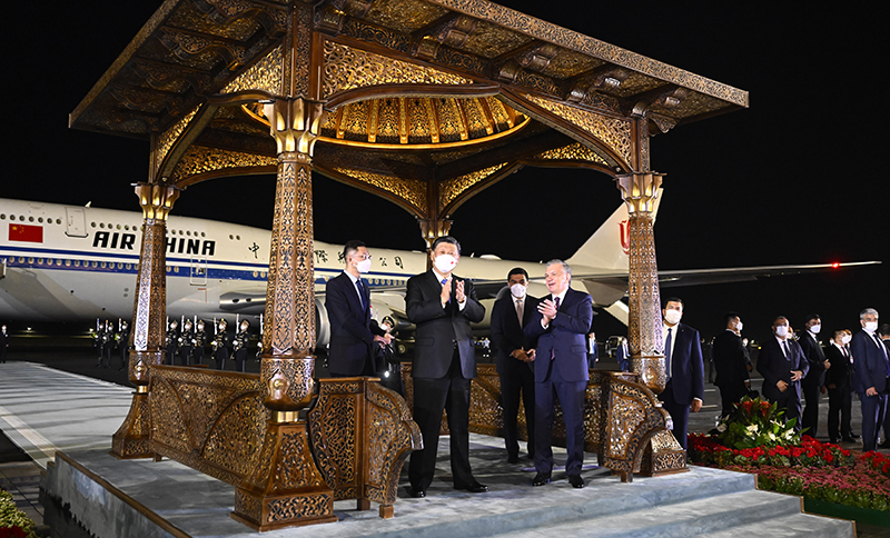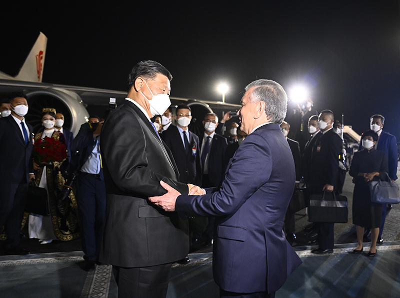 习近平抵达撒马尔罕 开始对乌兹别克斯坦共和国进行国事访问并出席上海合作组织成员国元首理事会第二十二次会议