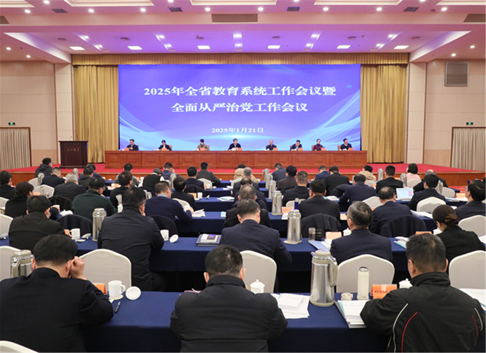 1月21日,2025年全省教育系统工作会议暨全面从严治党工作会议在杭召开。会议深入学习贯彻习近平总书记关于教育的重要论述精神和全国教育大会、第二十八次全国高校党的建设工作会议精神,贯彻落实全国教育工作会议和省两会部署,总结工作、分析形势,研究部署2025年全省教育工作和全面从严治党工作。省委教育工委副书记,省教育厅党组书记、厅长陈春雷出席会议并讲话,省委教育工委委员、省教育厅党组成员、省纪委省监委驻省教育厅(省委教育工委)纪检监察组组长王健就全面从严治党工作作具体部署。会议传达了省长刘捷对教育工作的批示精神。